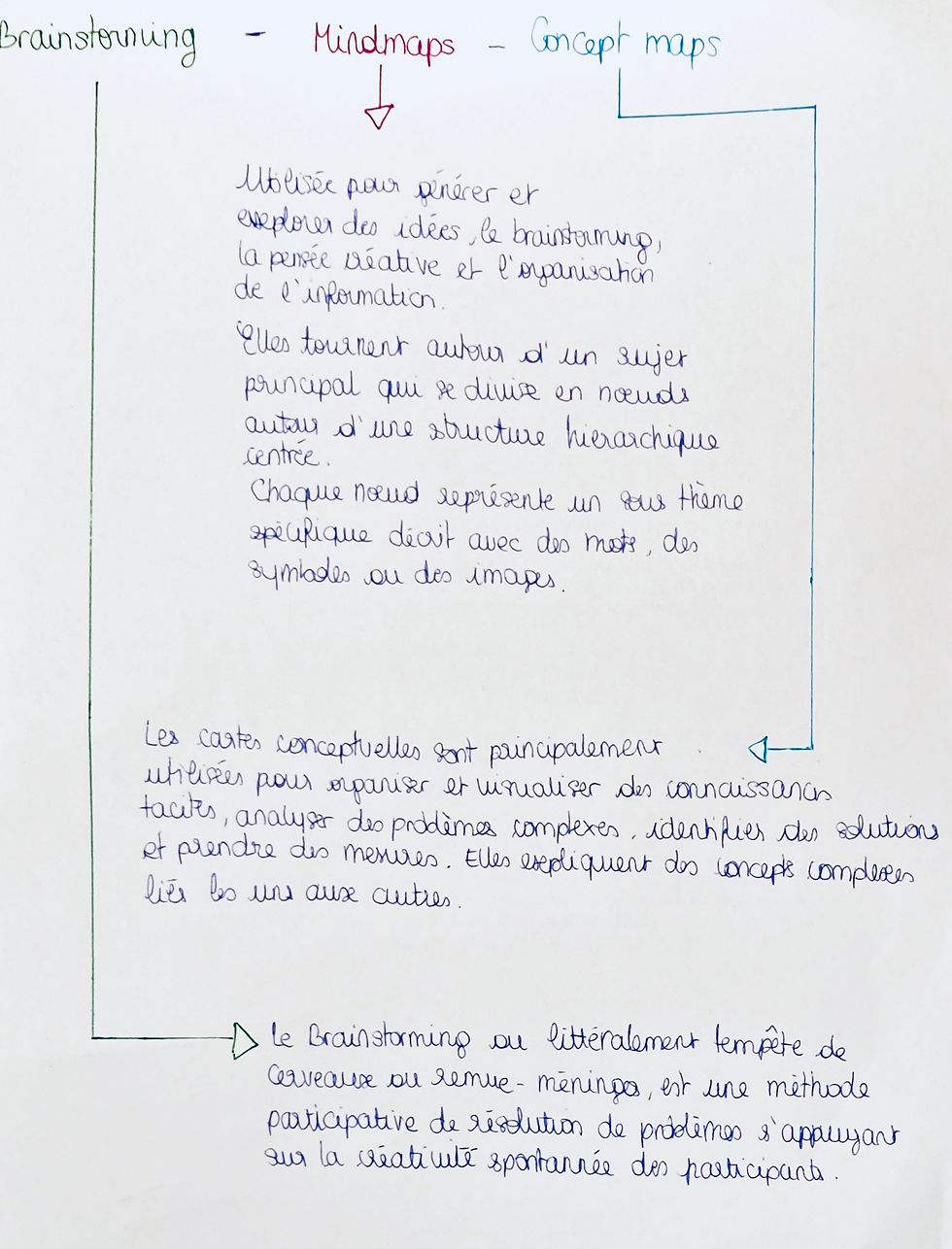 Je voulais également vous partager à quoi pourrait ressembler un brainstorming, une mindmap et une conceptmap en pratique :
